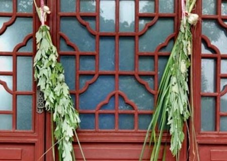民谚说:“清明插柳,端午插艾。”在端午节,家家户户都要将菖蒲、艾条插于门楣,悬于堂中。艾叶(也叫艾蒿)是一味芳香化浊的中药,有较强的驱毒除瘟作用。现代研究表明,悬挂艾叶及燃烧艾叶的确有杀菌消毒、预防瘟疫流行的作用。